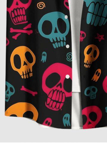 Plus Size Skull Star Bone Print Halloween Button Pocket Shirt For Men - Black - 5xl