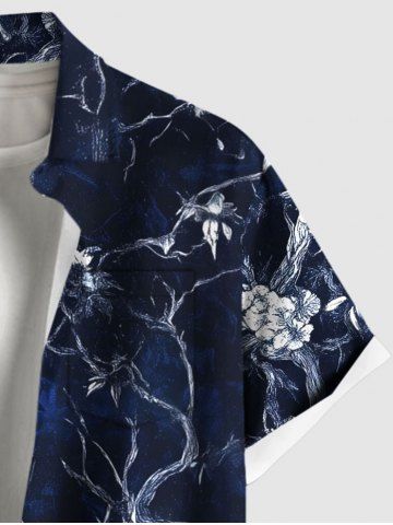 Plus Size Skull Tree Flower Print Hawaii Button Pocket Shirt For Men - Blue - 6xl