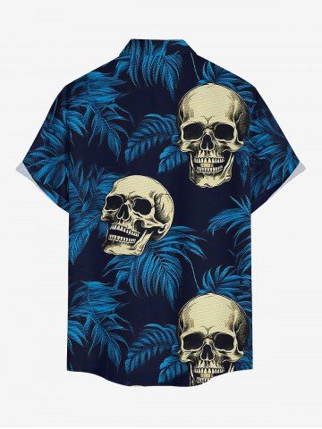 Plus Size Skull Tropical Leaf Print Buttons Pocket Hawaii Shirt For Men - Deep Blue - Xl