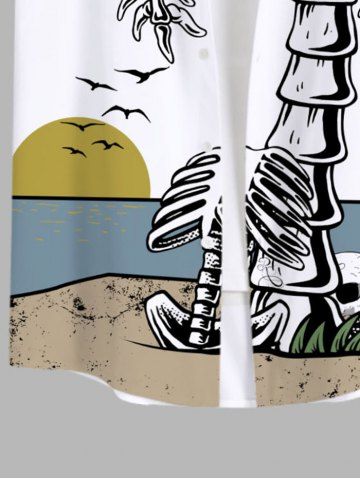 Plus Size Skulls Coconut Tree Fish Skeleton Sea Sun Print Hawaii Button Pocket Shirt For Men - Multi-a - 3xl