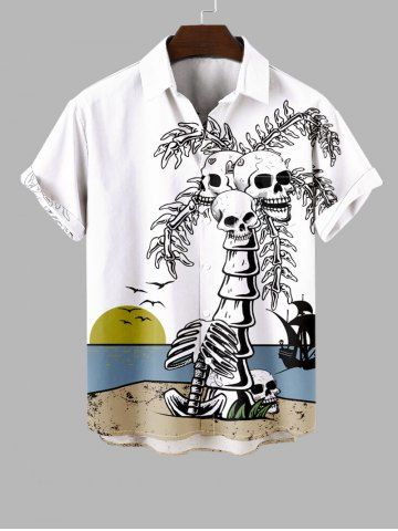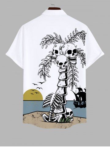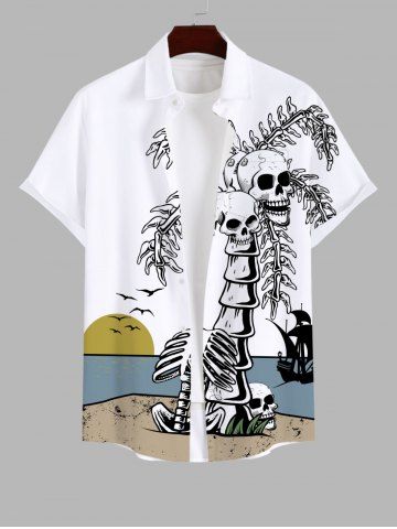 Short Sleeves Shirts > Plus Size Skulls Coconut Tree Fish Skeleton Sea Sun Print Hawaii Button Pocket Shirt For Men