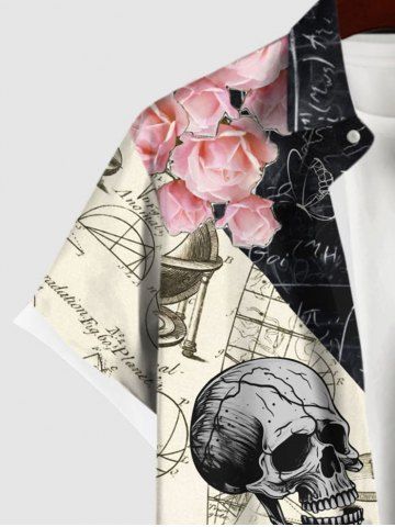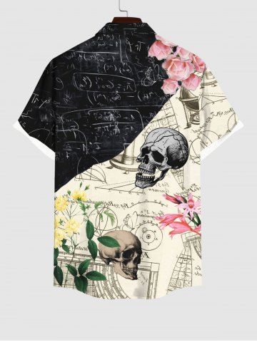 Plus Size Skulls Floral Mathematical Geometry Print Button Pocket Shirt For Men - Multi-a - L