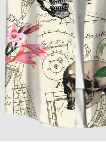 Plus Size Skulls Floral Mathematical Geometry Print Button Pocket Shirt For Men - Multi-a - 3xl