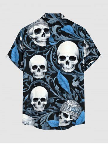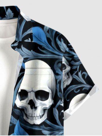 Plus Size Skulls Flower Leaf Print Buttons Pocket Hawaii Shirt For Men - Sky Blue - Xl