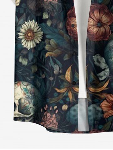 Plus Size Skulls Flowers Print Buttons Pocket Hawaii Shirt For Men - Deep Blue - 4xl