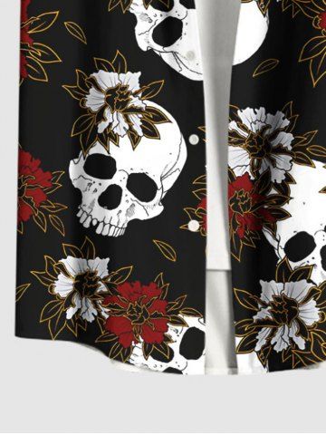 Plus Size Skulls Flowers Print Buttons Pocket Shirt For Men - Black - M