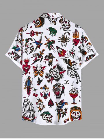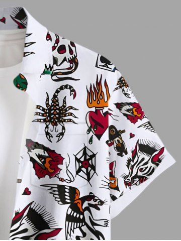 Plus Size Skulls Heart Ship Frog Scorpion Ice Cream Cruise Print Buttons Pocket Shirt For Men - White - 6xl