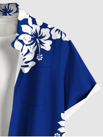 Short Sleeves Shirts > Plus Size Skulls Hibiscus Flower Leaf Tropical Print Buttons Pocket Hawaii Shirt For Men