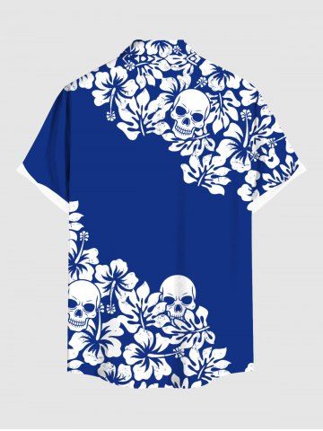 Short Sleeves Shirts > Plus Size Skulls Hibiscus Flower Leaf Tropical Print Buttons Pocket Hawaii Shirt For Men