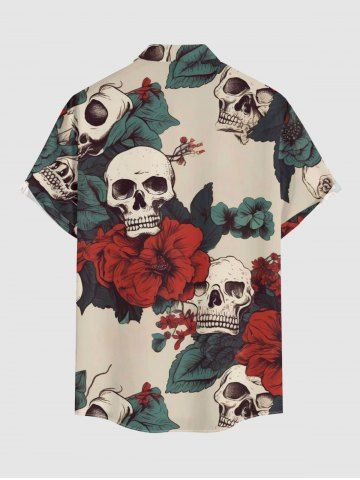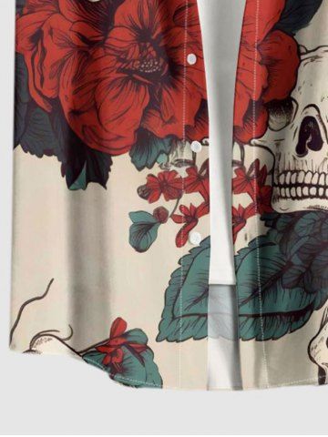 Plus Size Skulls Leaf Flower Print Hawaii Button Pocket Shirt For Men - Light Coffee - 6xl