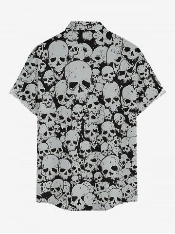 Plus Size Skulls Print Buttons Pocket Hawaii Shirt For Men - Black - M