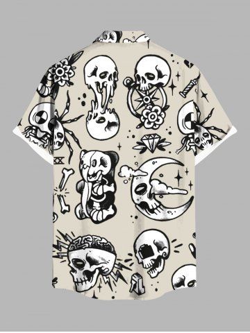 Plus Size Skulls Rose Flower Moon Diamond Print Buttons Pocket Shirt For Men - Beige - S