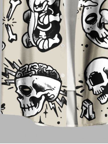 Plus Size Skulls Rose Flower Moon Diamond Print Buttons Pocket Shirt For Men - Beige - M