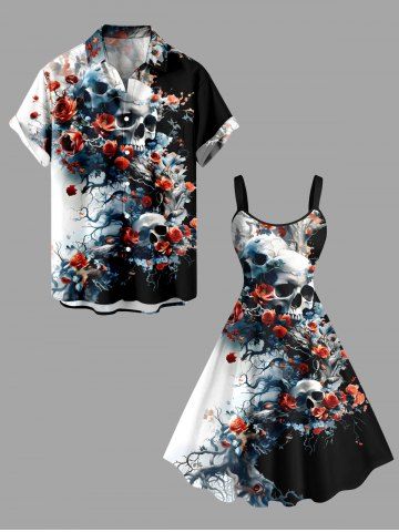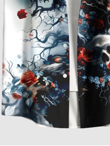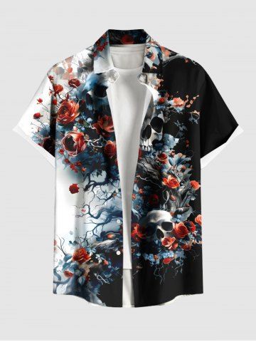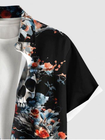 Plus Size Skulls Rose Flower Print Buttons Pocket Hawaii Shirt For Men - Black - 4xl