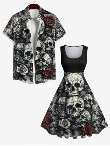 Halloween Costume Skulls Rose Flower Crack 3D Print Plus Size Matching Outfit For Couples