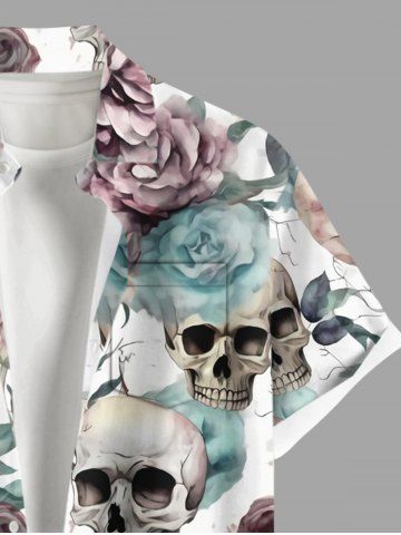 Short Sleeves Shirts > Plus Size Skulls Rose Flowers Print Buttons Pocket Hawaii Shirt For Men