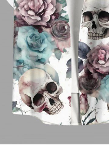 Plus Size Skulls Rose Flowers Print Buttons Pocket Hawaii Shirt For Men - Black - Xl