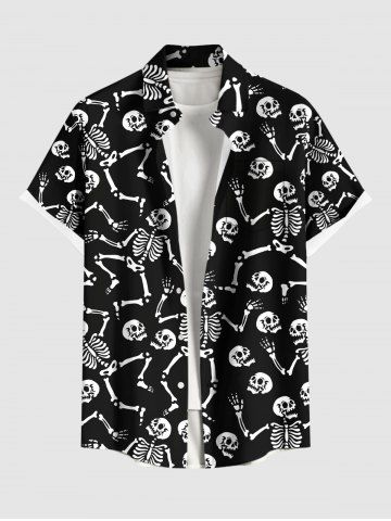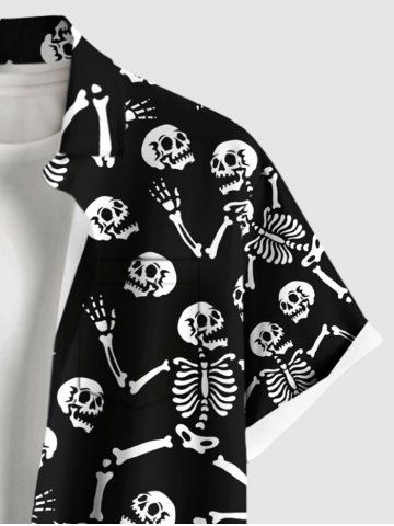 Plus Size Skulls Skeleton Print Buttons Pocket Shirt For Men - Black - M