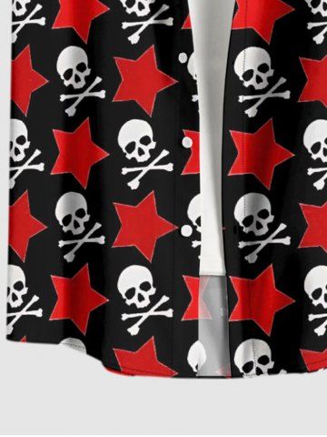 Plus Size Skulls Star Print Button Pocket Shirt For Men - Red - S