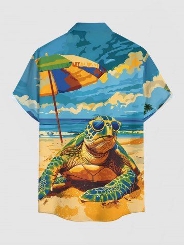 Short Sleeves Shirts > Plus Size Sky Sea Sunshade Turtle Print Hawaii Sea Creatures Button Pocket Shirt For Men