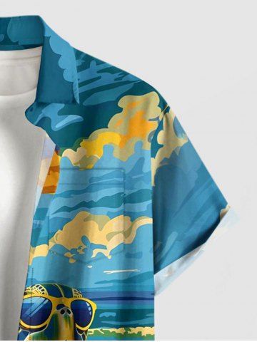 Plus Size Sky Sea Sunshade Turtle Print Hawaii Sea Creatures Button Pocket Shirt For Men - Sky Blue - 2xl