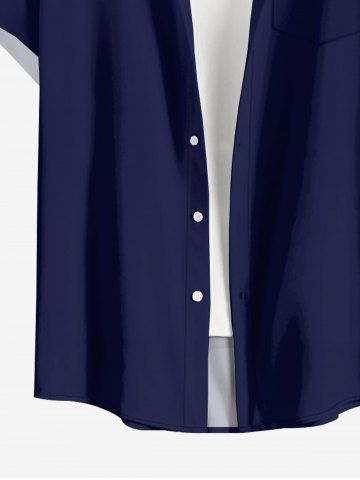 Plus Size Solid Print Hawaii Button Pocket Shirt For Men - Navy Blue - L