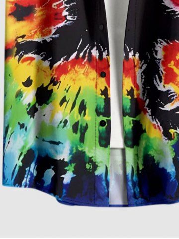 Short Sleeves Shirts > Plus Size Spiral Tie Dye Cat Print Buttons Pocket Hawaii Shirt For Men