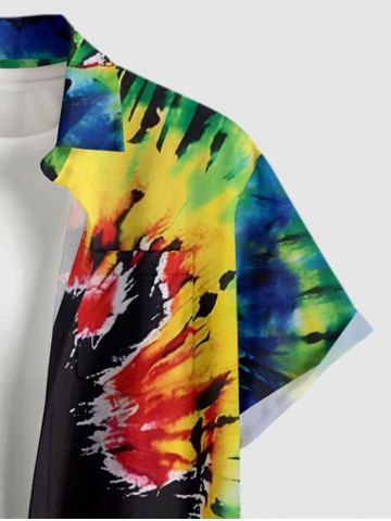 Short Sleeves Shirts > Plus Size Spiral Tie Dye Cat Print Buttons Pocket Hawaii Shirt For Men