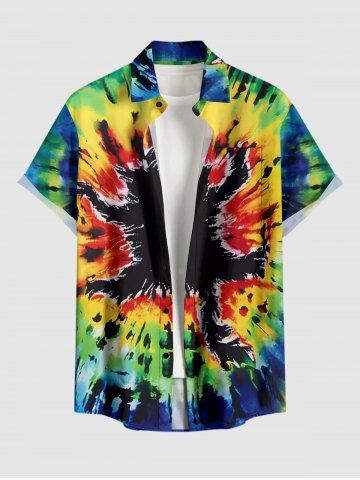 Short Sleeves Shirts > Plus Size Spiral Tie Dye Cat Print Buttons Pocket Hawaii Shirt For Men
