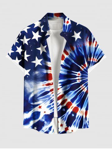 Short Sleeves Shirts > Plus Size Spiral Tie Dye Patriotic American Flag Print Button Pocket Shirt For Men