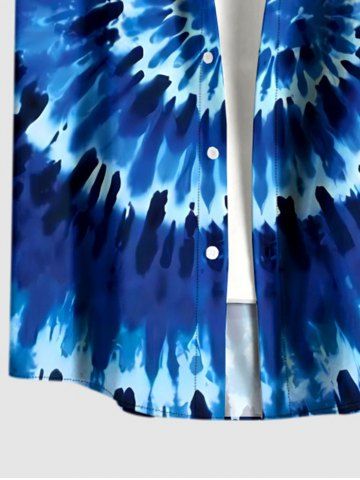 Plus Size Spiral Tie Dye Print Hawaii Button Pocket Shirt For Men - Blue - S