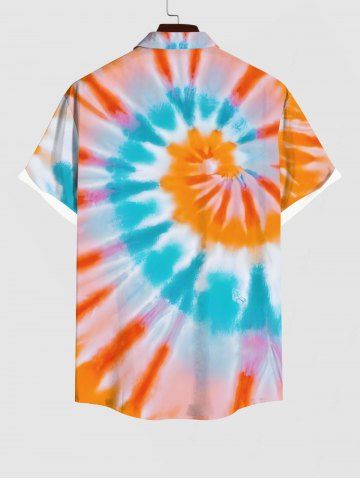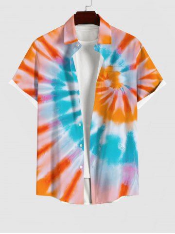 Short Sleeves Shirts > Plus Size Spiral Tie Dye Print Hawaii Buttons Pocket Shirt For Men