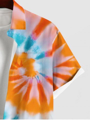 Short Sleeves Shirts > Plus Size Spiral Tie Dye Print Hawaii Buttons Pocket Shirt For Men