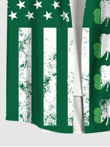 Plus Size St. Patrick's Day Clover Leaf Patriotic American Flag Print Buttons Pocket Shirt For Men - Green - 3xl