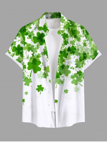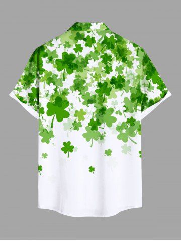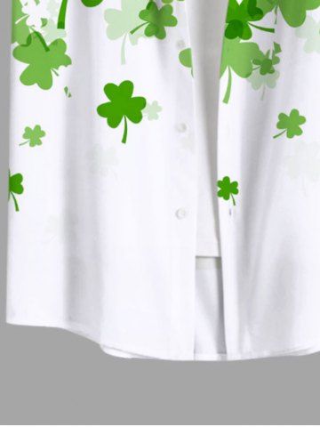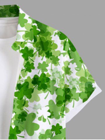 Plus Size St. Patrick's Day Clover Leaf Print Buttons Pocket Shirt For Men - White - L