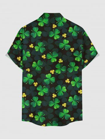 Short Sleeves Shirts > Plus Size St. Patrick's Day Cloves Leaf Print Buttons Pocket Shirt For Men