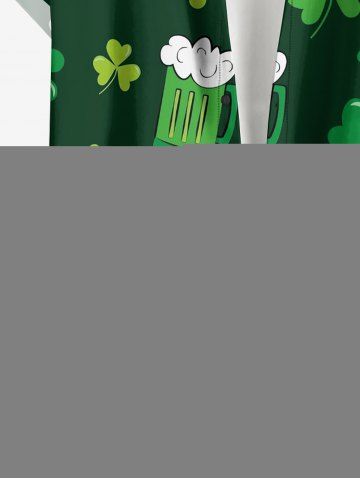 Plus Size St. Patrick's Day Hat Cloves Beer Print Buttons Pocket Shirt For Men - Deep Green - L