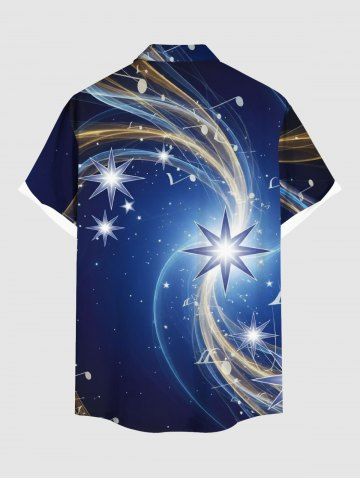Plus Size Star Light Beam Ombre Galaxy Print Hawaii Button Pocket Shirt For Men - Navy Blue - Xl