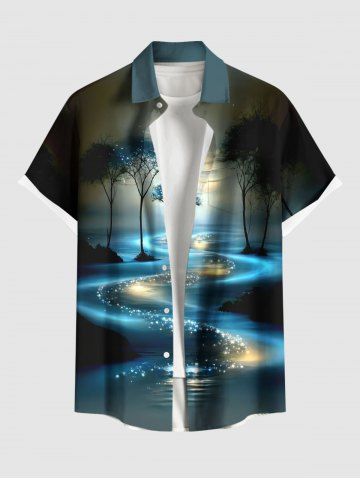 Short Sleeves Shirts > Plus Size Star Tree Sparkling Sequin Glitter 3D Print Buttons Pocket Hawaii Shirt For Men