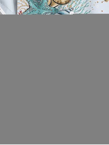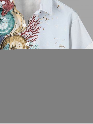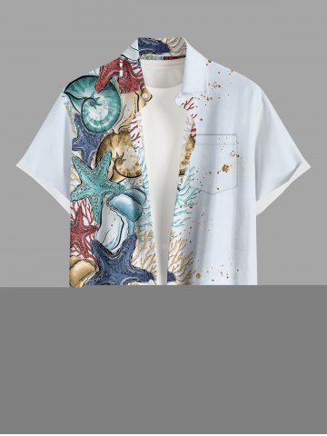 Plus Size Starfish Conch Coral Print Buttons Pocket Hawaii Shirt For Men - Light Blue - S