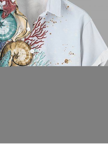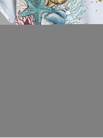 Plus Size Starfish Conch Coral Print Buttons Pocket Hawaii Shirt For Men - Light Blue - M