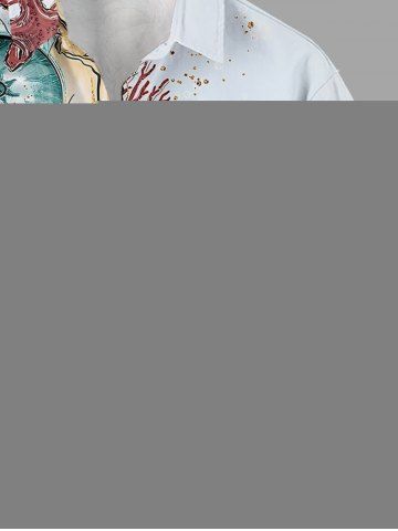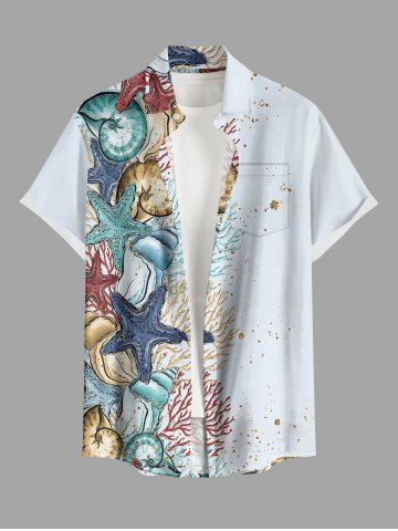 Plus Size Starfish Conch Coral Print Buttons Pocket Hawaii Shirt For Men - Light Blue - Xl