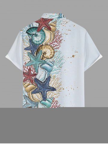 Short Sleeves Shirts > Plus Size Starfish Conch Coral Print Buttons Pocket Hawaii Shirt For Men