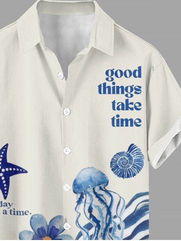 Short Sleeves Shirts > Plus Size Starfish Jellyfish Turtle Flowers Print Buttons Pocket Hawaii Shirt For Men
