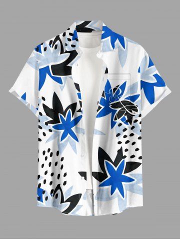 Plus Size Strawberry Flower Print Hawaii Button Pocket Shirt For Men - White - 2xl