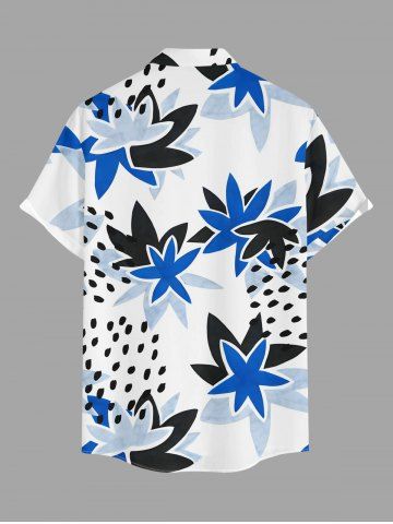 Plus Size Strawberry Flower Print Hawaii Button Pocket Shirt For Men - White - 4xl