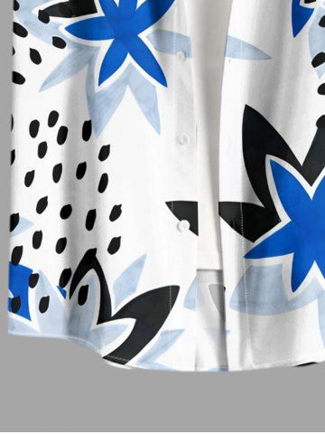 Plus Size Strawberry Flower Print Hawaii Button Pocket Shirt For Men - White - 6xl