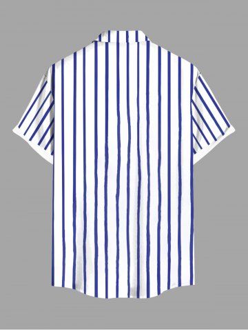 Short Sleeves Shirts > Plus Size Striped Coconut Tree Deck Chairs Parquet Print Hawaii Button Pocket Shirt For Men