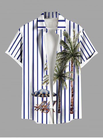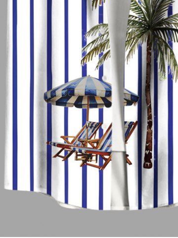 Plus Size Striped Coconut Tree Deck Chairs Parquet Print Hawaii Button Pocket Shirt For Men - Sky Blue - 2xl