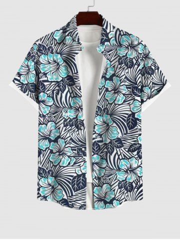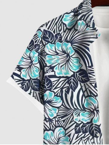 Plus Size Striped Flower Print Hawaii Button Pocket Shirt For Men - Multi-a - S